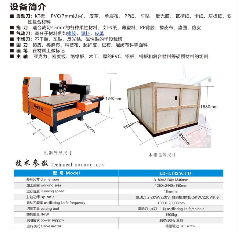 1325广告巡边两用雕刻机主要用于UV喷绘后期产品异性巡边雕刻切割,软硬通吃。