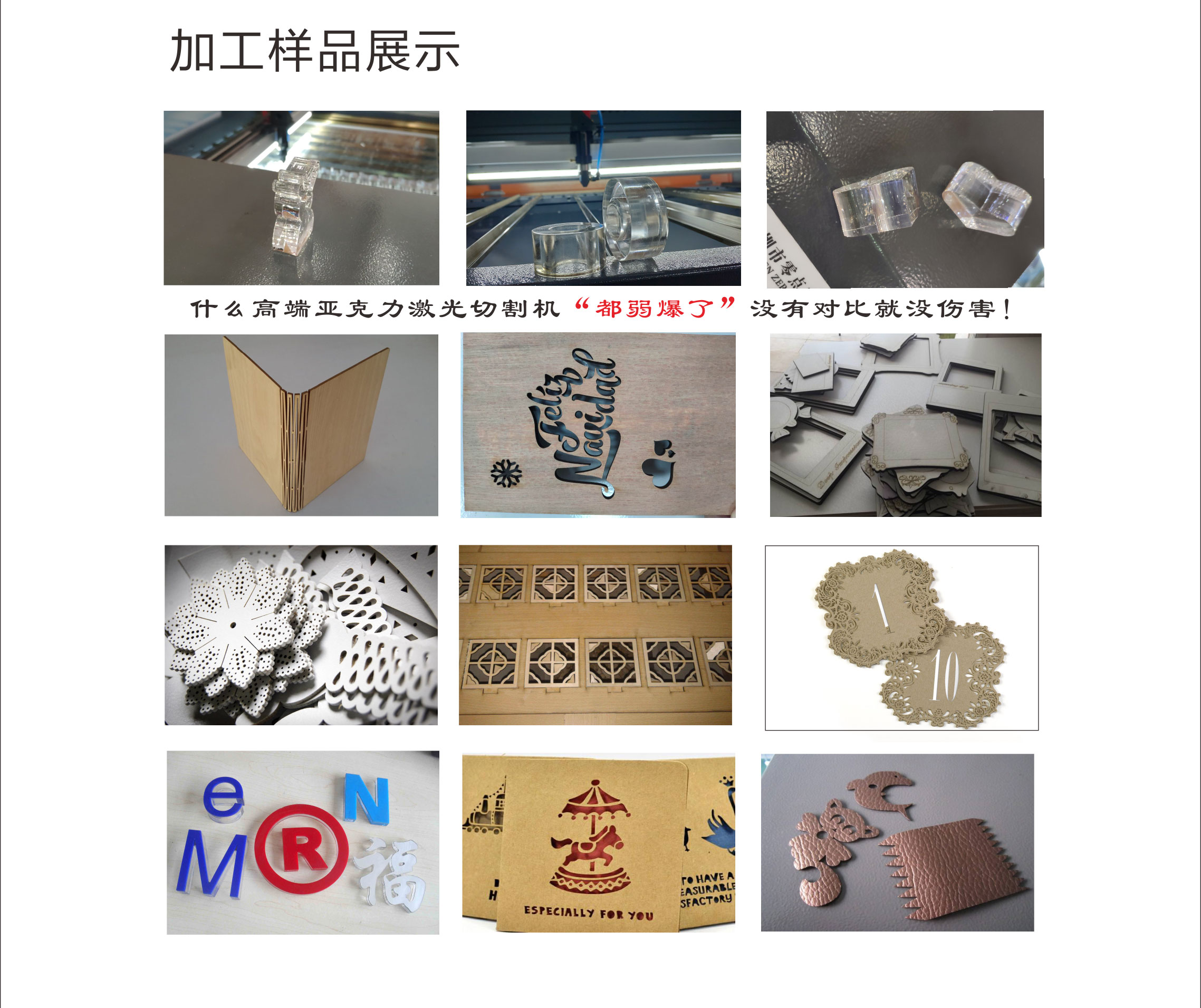 有机玻璃(亚克力)、木制品纸品、竹制品、皮革、布料、双色板等